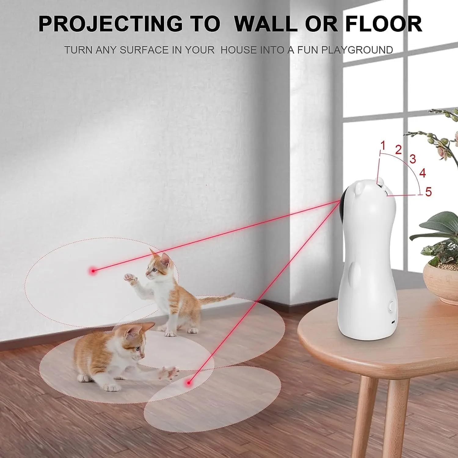 Our automatic laser toy projects a red light that moves in random patterns, encouraging your cat to chase and pounce. Simply turn it on, place it on a flat surface, and let your cat enjoy hours of active fun — no manual effort required!